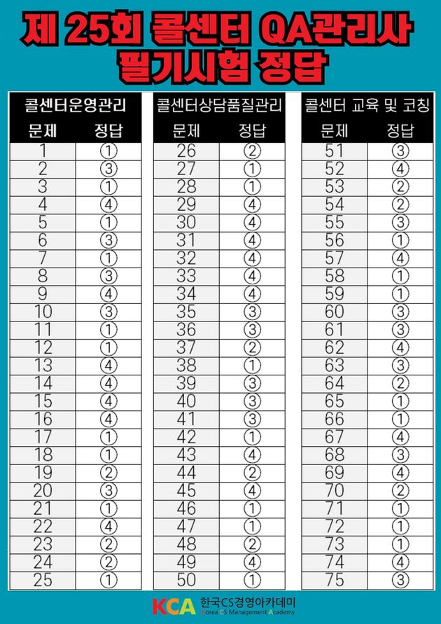 | 제목 | 제 25회 콜센터QA관리사 자격증 필기시험 정답 공개!! |