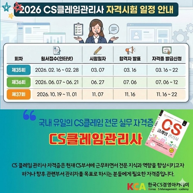 | 제목 | 2026년 CS클레임관리사 자격시험 일정 안내 |